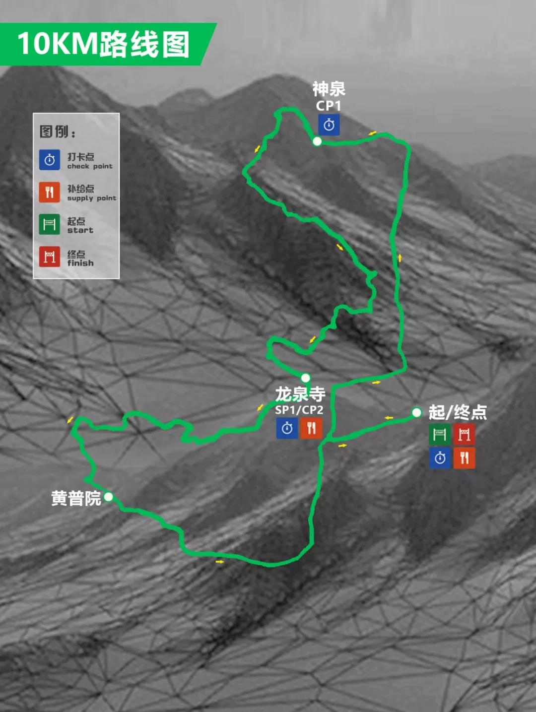 起点-神泉-乘凉石-白塔水库-水帘洞-龙泉寺-终点。