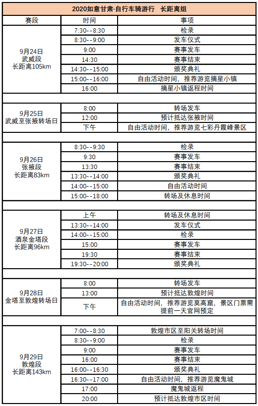 服务时间为比赛期间即9月23日-9月29日,武威-张掖-酒泉-敦煌四个城市间的大转场交通服务