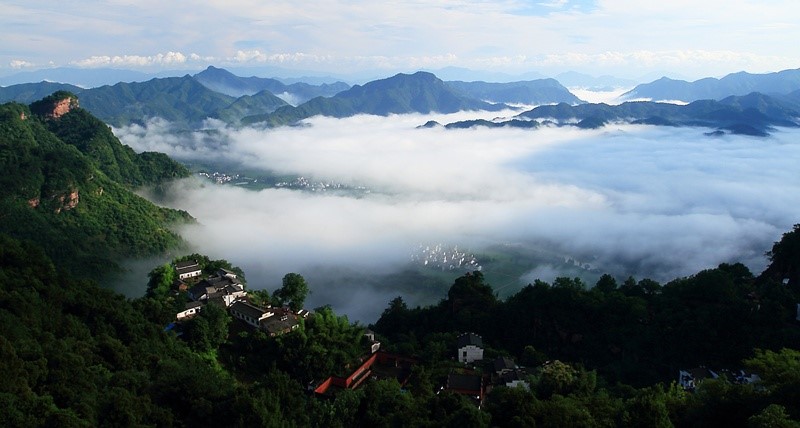 齐云山,位于安徽省黄山市休宁县境内的齐云山镇。古称白岳,因遥观山顶与云平齐得名。与武当山、龙虎山、青城山并称中国道教四大名山,是中国五大仙山之一,历史上素有“黄山白岳甲江南”之美誉。齐云山景区面积约110平方公里,自然保护区面积约150平方公里,1994年被国务院批准为国家级风景名胜区、国家森林公园。齐云山素有“黄山白岳相对峙,绿水丹崖甲江南”之称。清乾隆皇帝赞誉为“天下无双胜境,江南第一名山”。