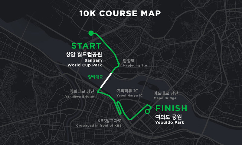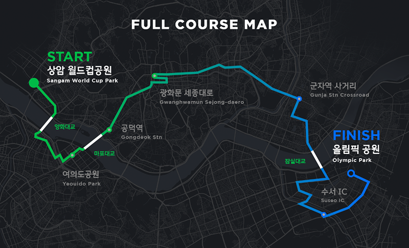 赛事起点:World Cup Park, World Cup-ro, Mapo-gu, Seoul, South Korea