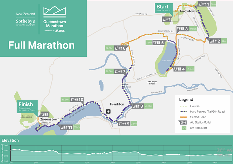 赛事终点:全马、半马、10公里均为---皇后镇娱乐场(Queenstown Recreation Ground)