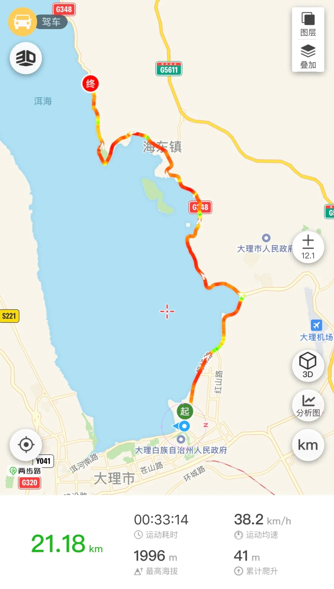 全程马拉松:爱徒野户外店(起终点)沿线路起点往海东方向21km处折返