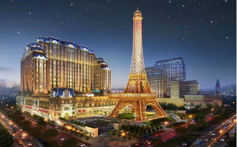 巴黎铁塔及灯光秀:位于澳门巴黎人的巴黎铁塔高约162米,铁塔的7楼及37楼设有观景台,游客乘搭观光电梯只需40秒便可到达37楼的观景台,观望澳门及金光大道的动人景色。配合不同的灯光特效主题及音乐,巴黎铁塔每晚皆会上演20场幻彩音乐灯光秀。
