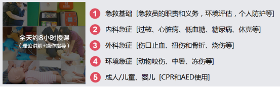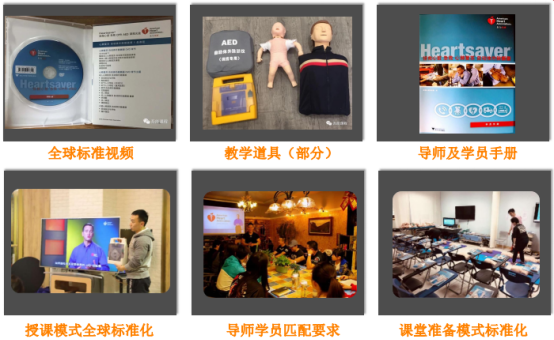 AHA的HS(Heartsaver)社会大众急救培训,全中文授课,全天约8小时的课程中学员将掌握常见急症的判断及处理方式,学会高效的CPR操作及AED的使用,适用于所有年龄段的普通大众。