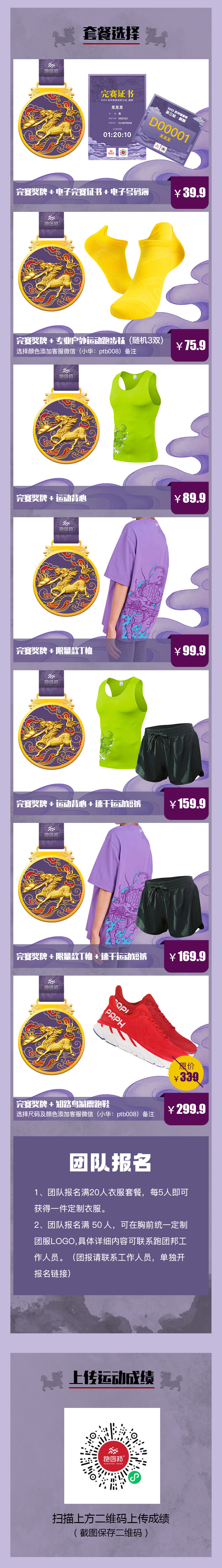 完赛奖牌+限量款T恤+速干运动短裤:169.9