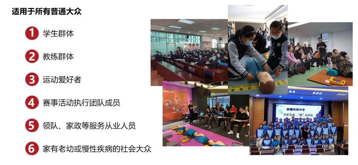 AHA的HS(Heartsaver)社会大众急救培训,全中文授课,全天约7小时的课程中学员将掌握常见急症的判断及处理方式,学会高效的CPR操作及AED的使用,适用于所有年龄段的普通大众。