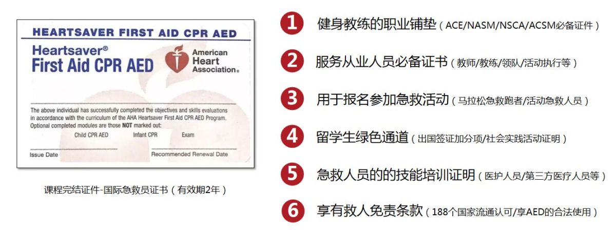 2、AHA老学员享受其他课程优惠报名价,证件到期后如需重新持证享8折报名价