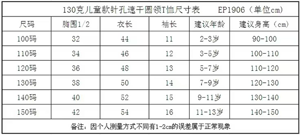 (附)参赛服尺码参考表: