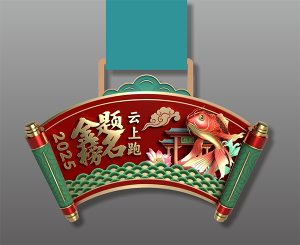 【以“金榜题名”的古代圣旨轴为设计原型,采用鲤鱼跃龙门的设计元素,寓意金榜题名夺得头魁,也暗示录取通知书如愿来到。】(奖牌效果图,以实物为准)