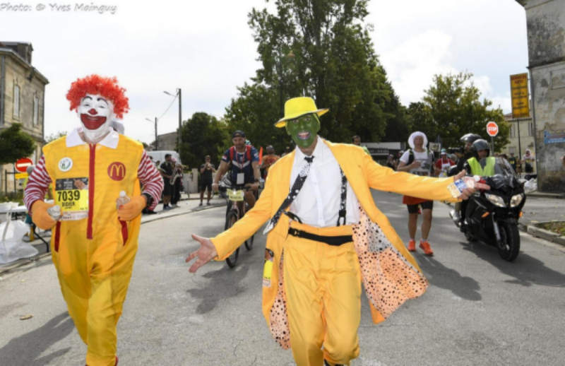 4. 千人移动Cosplay奇装异服嘉年华! Cosplay是梅多克红酒马拉松的又一主题。参赛者或独行或组团,挖空心思各出奇招,务求在奔跑的人流中独树一帜。当然,主办方也会给最佳造型者颁发一箱葡萄美酒作为奖励。值得一提的是,随着葡萄酒在中国受到越来越多人的喜爱,红酒马拉松在中国爱好者中也悄悄盛行。